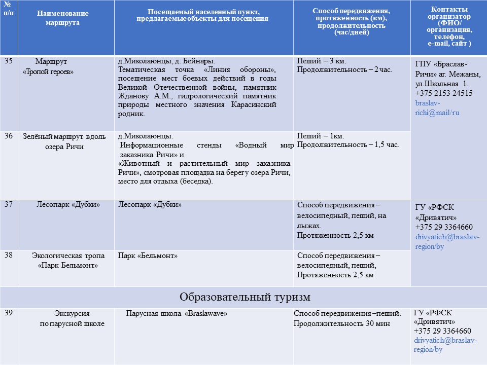 Инвестиционные предложения Национального парка "Браславские озера"
